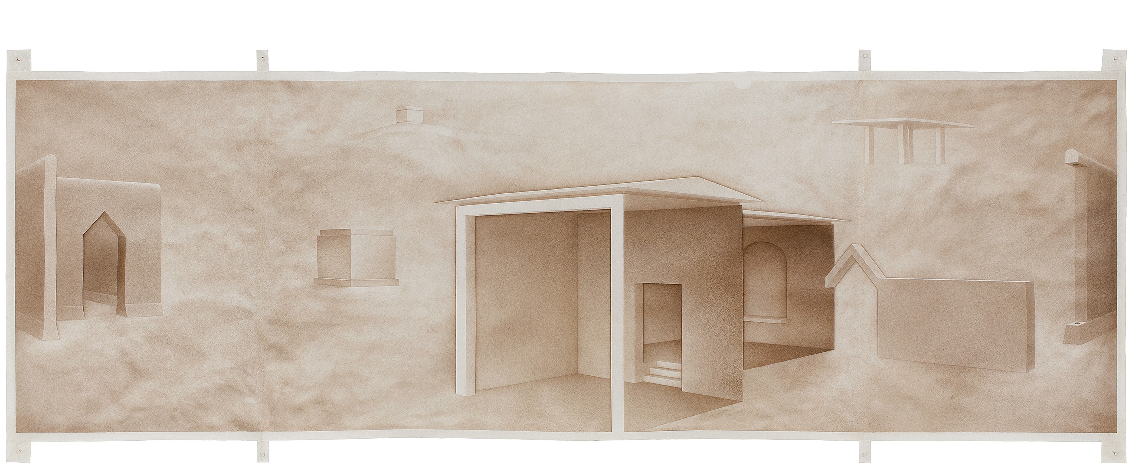 Museum (outpost) | 17" x 47", oil on parchment, 2012 | Collection of the artist