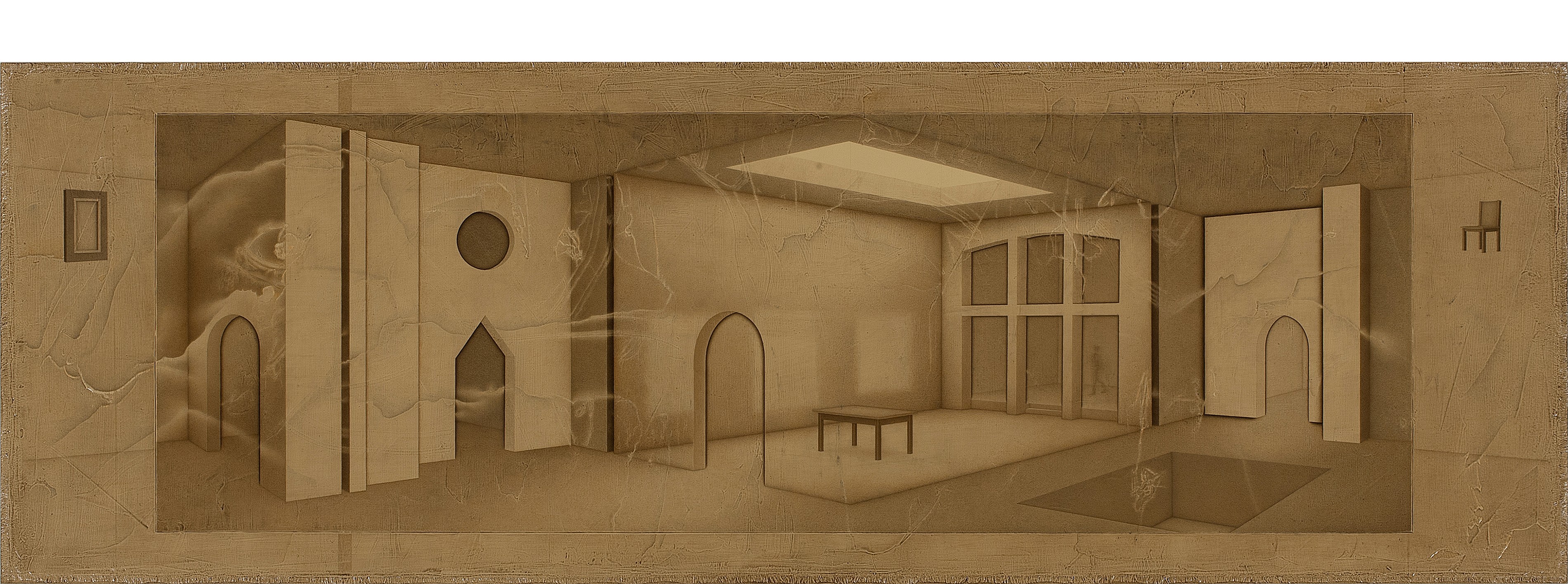 Museum (khamseen) | 16" x 48", oil on linen on panel, 2010 | Collection of the artist